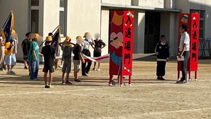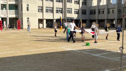 運動会に向けて児童会の子どもたちが開閉会式の練習をしていました。国旗や校旗、優勝旗など、堂々と入場できるよう練習していました。