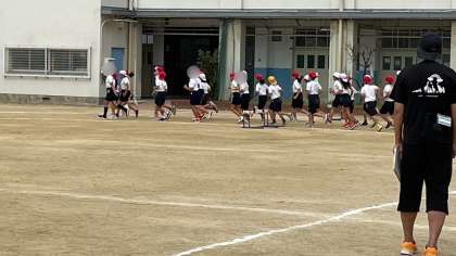 4年生の様子です。運動会練習です。個人走の障害物競走の練習をしていました。今日は並び方や障害物の体験をすることなどが目的なのですが、どうしても競争に熱くなっていました!