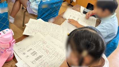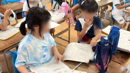 算数のテストが返ってきました。みんなで答え合わせをして、間違えたところはやり直します。