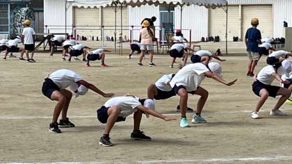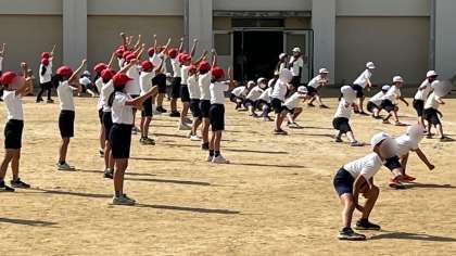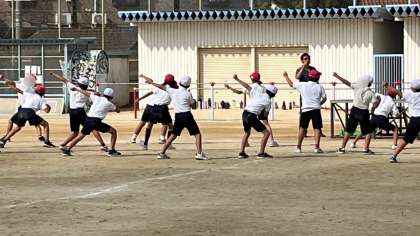 運動会練習です。ソーラン節が随分迫力が出てきました。子どもたちは一所懸命です。