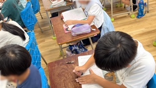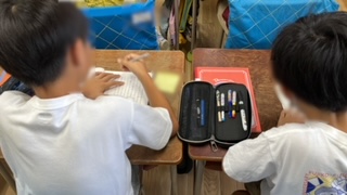 国語の学習で物語文です。文章を形式段落に分けて読み解いていきます。形式段落の番号を教科書に書いていました。