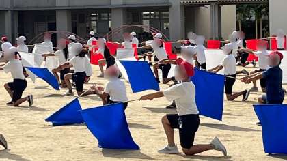 運動会練習もいよいよ仕上げにかかっています。細かい位置どりや動きを確認しています。