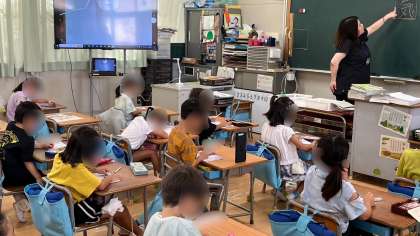 国語で新出漢字の学習です。「気」という字です。はらいの部分に気をつけて練習していました。
