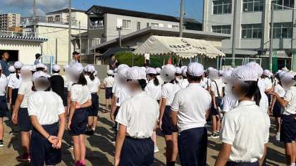 今日は、運動会全体練習です。運動場が少しぬかるんでいますが、土を入れて行いました。開閉会式の入退場や児童宣誓、全員による体操の時の隊形移動などを練習しました。開閉会式は学校全体での集団演技だと捉えて頑張るよう子どもたちを励ましました。