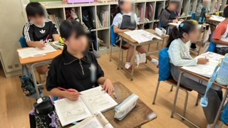 4年生の様子です。 理科の学習です。「人の体のつくりと運動」の単元のまとめをしていました。ワークシートに沿って学習してことをまとめ、先生の追加説明を聞いていました。