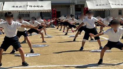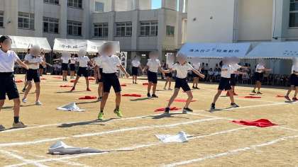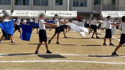 最後のプログラムは6年生による団体演技「Trust〜仲間を信じて〜」です。フラッグパフォーマンスが見ものでした。運動会のトリをとるのにふさわしい演技でした。