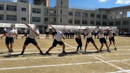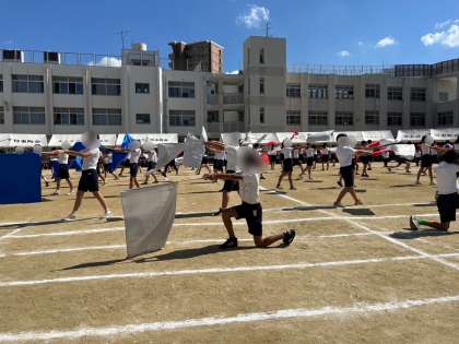 素晴らしいフラッグパフォーマンスの後、各班が決めポーズをして小学生最後の運動会を締めくくっていました。