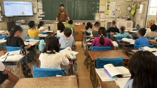 上段は1組の国語、ワークシートに沿って物語文を読み進めていました。中段は2組、算数の図形の学習です。四角形の辺で平行な辺を探していました。下段は3組、理科の学習で秋の植物の様子を観察していました。