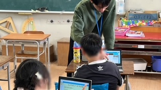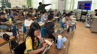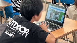 理科の学習です。秋の植物について調べたことをアプリを使ってまとめ、発表します。それぞれが調べたことのどこを知って欲しいかを考えて作っていました。