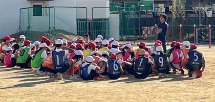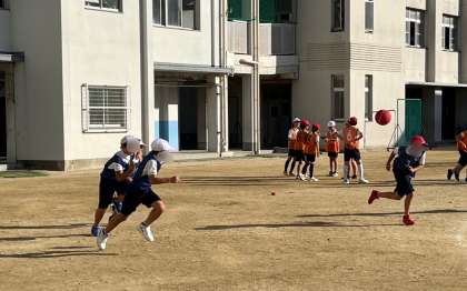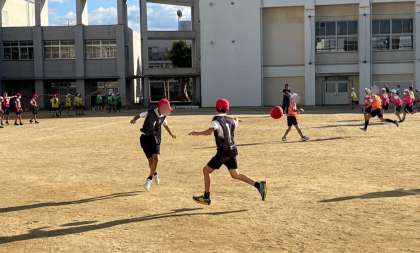 合同体育の学習です。ボール運動で走りながらボールを前に前につないでいく練習をしていました。なかなか上手くいかなくて苦労していましたが、楽しそうでした。