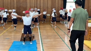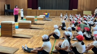 合同体育をしていました。様々な高さの跳び箱を用意し、自分が挑戦しようと思う高さの列に並びます。まずは、先生の説明をしっかり聞いていました。