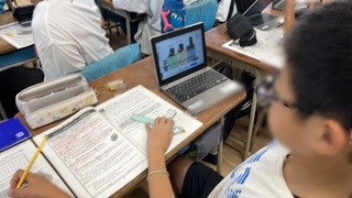 今年度、大阪市が取り組んでいる総合的読解力を高める学習の様子です。5年生はロボットについての教材です。