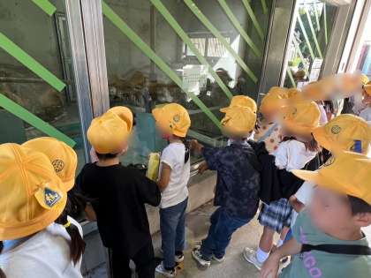 園内のいろんな動物を見て回っています。ワイワイガヤガヤとても楽しそうです。