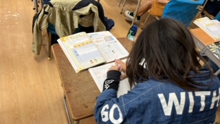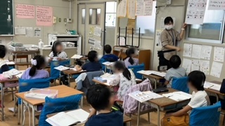 算数の九九の学習です。以前学習した九九のきまりを復習していました。教室に掲示してあるきまりを再確認していました。