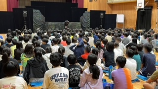 人形劇団京劇さんに来ていただき、人形劇「火曜日のごちそうはひきがえる」を観劇しました。午前中は低学年、午後は高学年に分けて観ました。