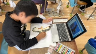 図工の学習です。遠足で見て写真を撮った動物を描いていました。レッサーパンダやキリン、ワシなどたくさんの動物が題材になっていました。