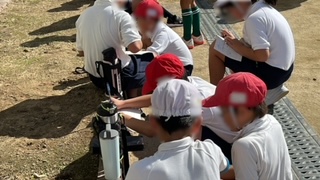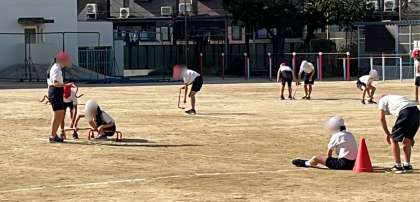 体育の学習で、陸上運動のハードル走の単元に入りました。みんなで準備をした後、今日はミニハードルを使っての練習でした。学習終わりにワークシートに今日の学習で得たことを記入していました。