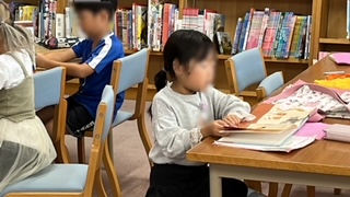 図書の時間でした。本に没頭している子、友だちと小声で話しながら本を見ている子たちなど様々でした。