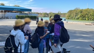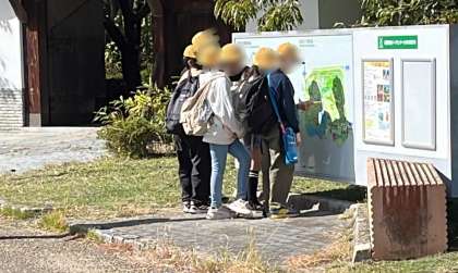 園内でのグループ活動が始まりました。地図を頼りに園内の施設ヲ巡っていました。広々としてとても気持ちがいいです。