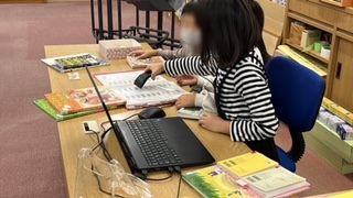 図書の時間でした。返却、貸し出しの作業が一通り終わってからも、図書委員さんは整理作業やデータ登録などを行っていました。お疲れ様!