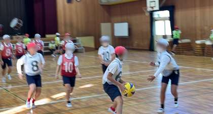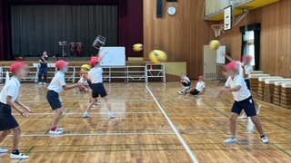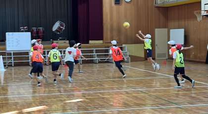 体育の学習です。キャッチボールなどの準備運動をしっかりしてからハンドボール型ゲームを楽しんでいました。