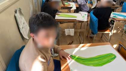 図工の学習で、へちまの絵を描いていました。実と葉や茎とを別々に描いて、後で貼り合わせます。