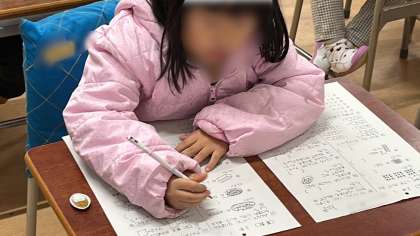 算数のテストに取り組んでいました。関連したテストが2枚です!あきらめずに最後までがんばろうね。