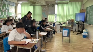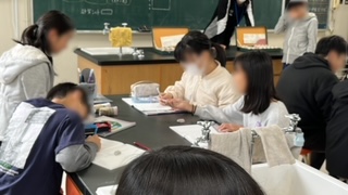 上段は1組、理科の学習で、大地のつくりについて、地層のサンプルを見ながら考えていました。中段の2組と下段の3組は、ともに算数の学習で、比について考えていました。
