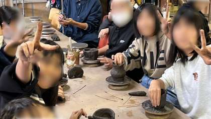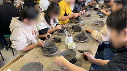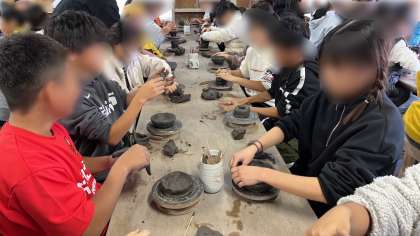 信楽焼作品作り真っ盛りです。みんな、とっても真剣でとっても楽しそうです♪