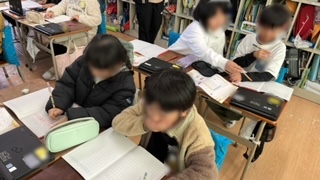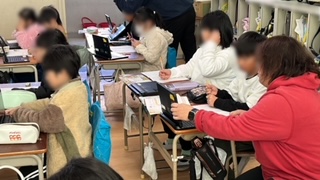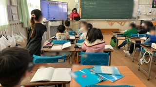 2年生の様子です。算数の学習で、12×5の計算の仕方を考えていました。今まで習ったことを元に考えをまとめてタブレット端末の発表ノート機能を活用して発表します。みんなの発表を見聞きして、その中から自分がよりやりやすい方法を見つけていきます。
