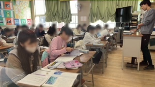 上段が1組、社会科の歴史学習です。中段は2組、国語の物語文の学習です。下段は3組、社会科の歴史学習の様子です。