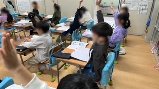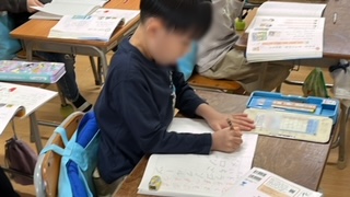 国語の学習です。仲間になる言葉を集めていました。今日はくだものの仲間でした。挙手している時もノートに板書を写している時も、姿勢よくすることを意識させていました。
