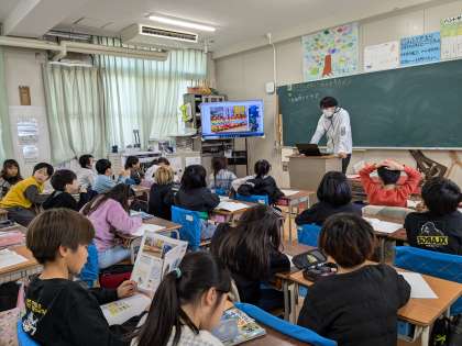 3年の社会の学習です。町の人の取り組みを考えようというめあてでした。住吉区の防災の取り組みについて考えていました。