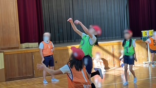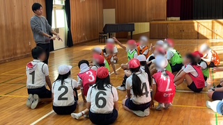 体育の学習でバスケットボールに取り組んでいます。練習試合をしながら、ルールやマナーなど気づいたことを話し合い、より楽しく安全な活動になるよう高めていきます。