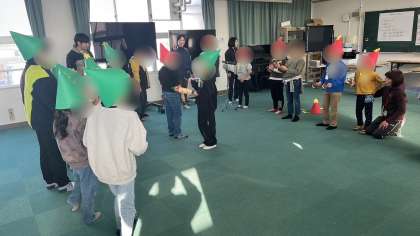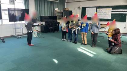 さあ、練習の成果を発揮する発表会です。赤チームも緑チームも綺麗な音色の合奏ができました。最後はみんなで合奏しました。とても楽しいひとときでした。