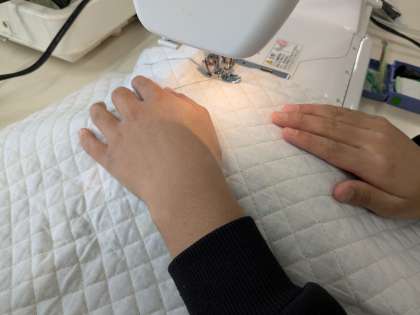 ミシンでナップザックを製作していました。