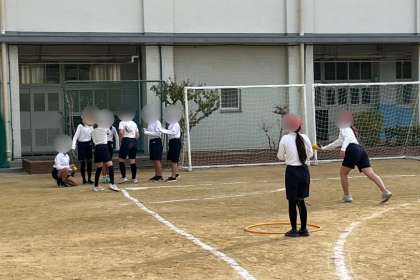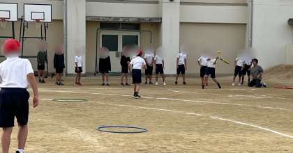 体育の学習で、ベースボール型ゲームを楽しんでいました。とっても盛り上がって歓声が絶え間なく上がっていました。