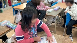 出前コンサートに来ていただいたエバリーさんにお礼の手紙を書いていました。色鉛筆で着色してカラフルに仕上げていました。
