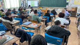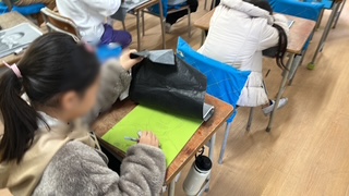 図工の学習で、版画に取り組んでいました。自分の写真を拡大コピーし、トレーシングペーパーで木版に写しとっていました。それを下絵に彫っていくようです。