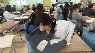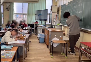 上段の1組、中段の2組、下段の3組とも算数の学習でした。分数についての学習に入っていました。