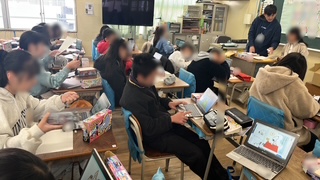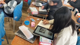 図工の学習で、テープカッター作りに取り組んでいました。木板を好きな形にデザインして作るようです。どんなデザインにするかじっくり考えている子、もう下絵に取り掛かっている子、ネットで写真を検索してイメージしている子など様々です。