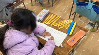 算数の学習でした。たくさんの数を数える数え方について、ブロックやカードなどを使いながら視覚的に数を捉えられるようにしながら考えていました。10をひとまとまりとして考えて、10とあといくつというふうにするとわかりやすいことに気づきました。