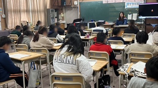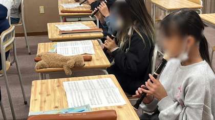 音楽の学習です。リコーダーの演奏や合唱の練習などをしていました。どちらもとてもとても上手で、聴いていて気持ちがいいです。