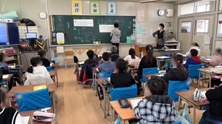 算数の学習です。問題を考える時、絵に表して考えると分かりやすいことについて学びました。ここから、テープ図に発展させていきます。