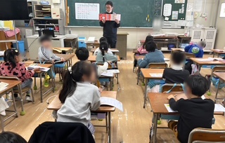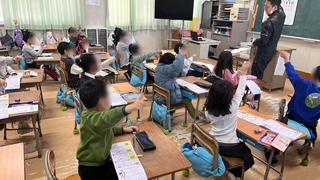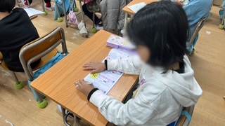 国語の学習で新出漢字の練習をしていました。今日は「田」です。書き順を確認してドリルに丁寧に練習していました。
