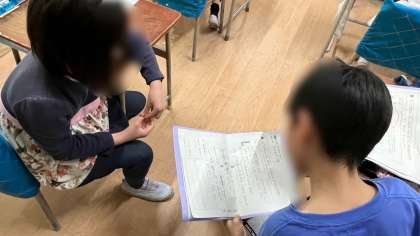 国語の学習です。「あなのやくわり」の説明文を読み解いていました。ワークシートに沿って読み取っていった自分の意見を友だちと交流しあいます。