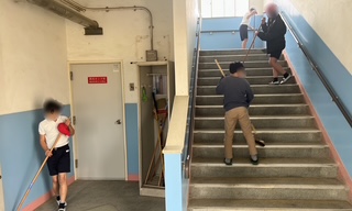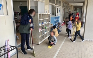お昼休憩のあとは、全児童で清掃活動をしています。みんなが気持ちよく過ごせるためにみんなで綺麗にします。