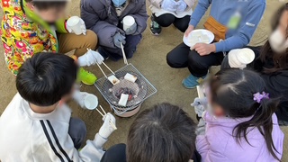 3年生の様子です。社会科で、昔の暮らしを体験する一環として七輪でお餅を焼いて食べました。今のようにレンジやオーブンに入れておいたら勝手に焼けるのではなくて、ずっと様子を見ながら焼いていました。なかなか上手く焼けずに焦がしている子も多かったです。