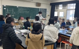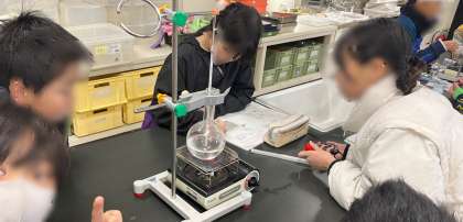 理科の学習です。「物のあたたまり方」の単元で、水を温めるとその様子はどうなっていくかの実験をしていました。セッティングや火を扱う注意事項の指導をしっかり聞いて実験に入りました。