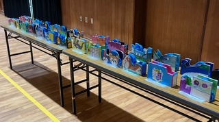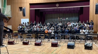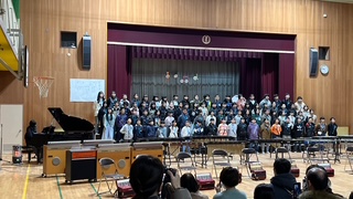講堂で音楽発表会でした。学年全体が綺麗なハーモニーで歌う合唱やリズムのあった合奏を披露しました。講堂後ろには図工作品も展示しました。